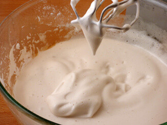 4. Verjük fel a lenfehérjét kemény habbá. Ez eltart egy ideig, akár 7-8 percig is. Elektromos habverővel dolgozzunk.