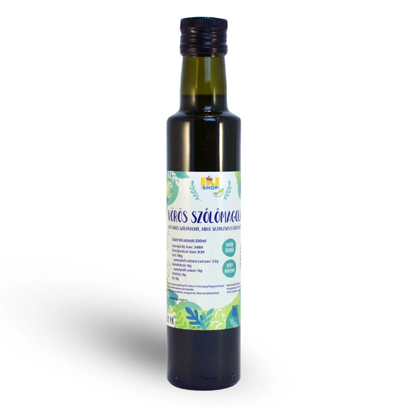 A vörös szőlőmagolaj érett szőlőszemek magvából készül. A szárított magokat összezúzzák, és magasnyomású préssel kisajtolják belőle az olajat. A szőlőmagnak igen alacsony az olajtartalma, emiatt igen drága. Az E-vitaminban különösen gazdag olajok közé tartozik. A szőlőmagvak gazdagok antioxidánsokban, C- és B-vitaminban, valamint béta-karotin tartalma is jelentős.