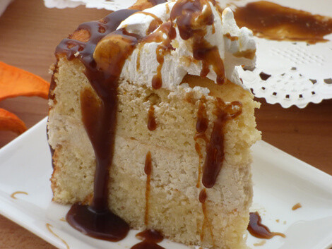 8. A torta összeállításához javasoljuk, hogy a krém felületét is locsoljátok meg a karamellel.