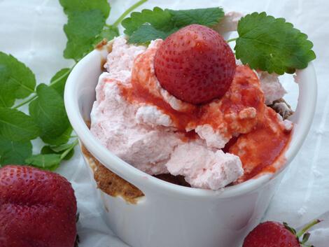 Tényleg nagyon hamar elkészíthető, mi már számtalanszor megsütöttük, mindig hibátlanul sikerült, kisütés után akár egy kanál lekvárral is finom, de olvasztott csokival a tetején sem akármilyen élmény. Tojás nélkül is duplájára nő sütés közben, laza, igazi piskótákra emlékeztető állagú, puha, a választott feltéttől függően más-más karakterű, változatosan tálalható, szép étel. Mi eperöntettel, bodzazselével, olvasztott csokival is variáltuk. Volt egy kicsi növényi habalapunk, azt is bevetettük, de csak a fotó kedvéért, hab nélkül is nagyon finom.