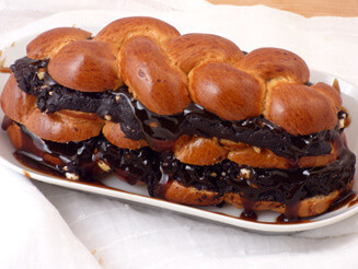 Mi most boltban vásárolt kalácsot használtunk hozzá, de elkészíthető a receptjeink között megtalálható vegán kaláccsal is, aminek a linkjét ebben a posztban megtaláljátok..