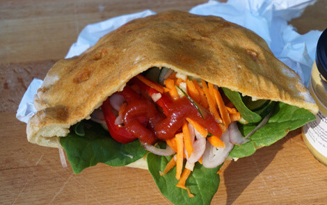 6. A kisült pitát vágjuk ketté. Töltsük meg kedvünk szerint.