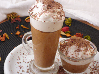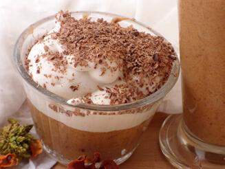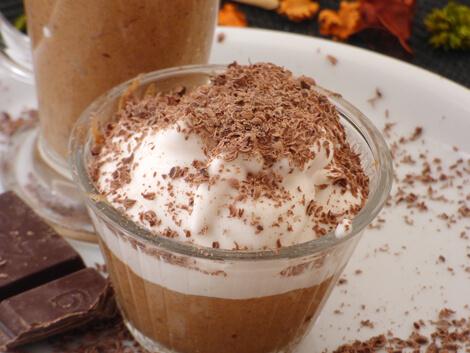 5. Tálaláskor verjünk fel 1 deciliternyi lenfehérjét, halmozzuk a krém tetejére, szórjuk meg csokival vagy locsoljuk meg hígított mogyorókrémmel.