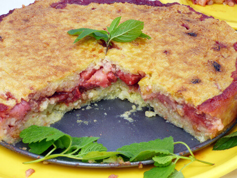 7. Felhalmozzuk rá a szeletelt epret, amit meghintünk kevés fahéjas eritritollal.