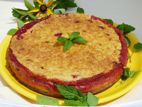 A formában hűtöttük ki. Akkor jól szeletelhető, ha már kihűlt. Mi vaníliapudinggal díszítettük.