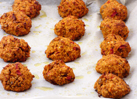 A mostani lencsefasírtunk annyiban különbözik a videón láthatótól, hogy most nem őrölt mandulát, hanem két kanál hántolt kendermagot használtunk ízesítésnek és az egyébként is igen értékes lencse tápértékének a fokozásához.