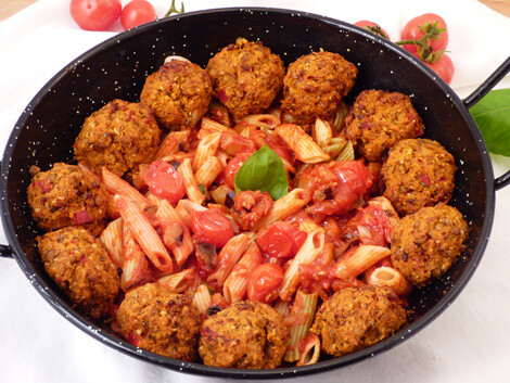 A vegán lencsefasírt lecsós rizstésztával vagy durum penne tésztával recept hozzávalói kedvező áron megvásárolhatók a bulkshop.hu webáruházban.