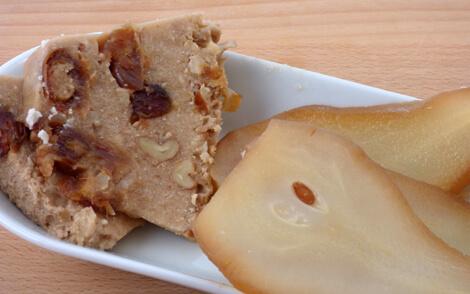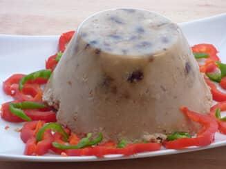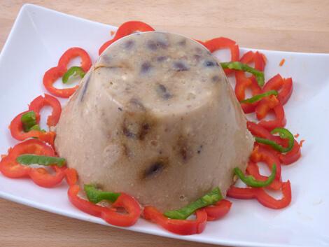 6. Kivesszük a hűtőből és a formából és ízlésesen tálaljuk. Mi grillezett körtékkel tálaltuk.