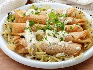 A palacsintákat kapros tökkel töltöttük. Elkészítését lásd: