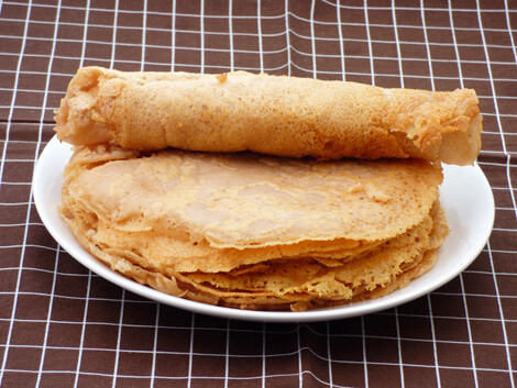 A száraz őrleményből készített tésztából akár serpenyőnyi nagyságú palacsinta is süthető. Az áztatott lencséből készült tészta ne töltse ki teljesen a serpenyő alját, mert a kisebb / közepes nagyságú könnyebben megfordítható.